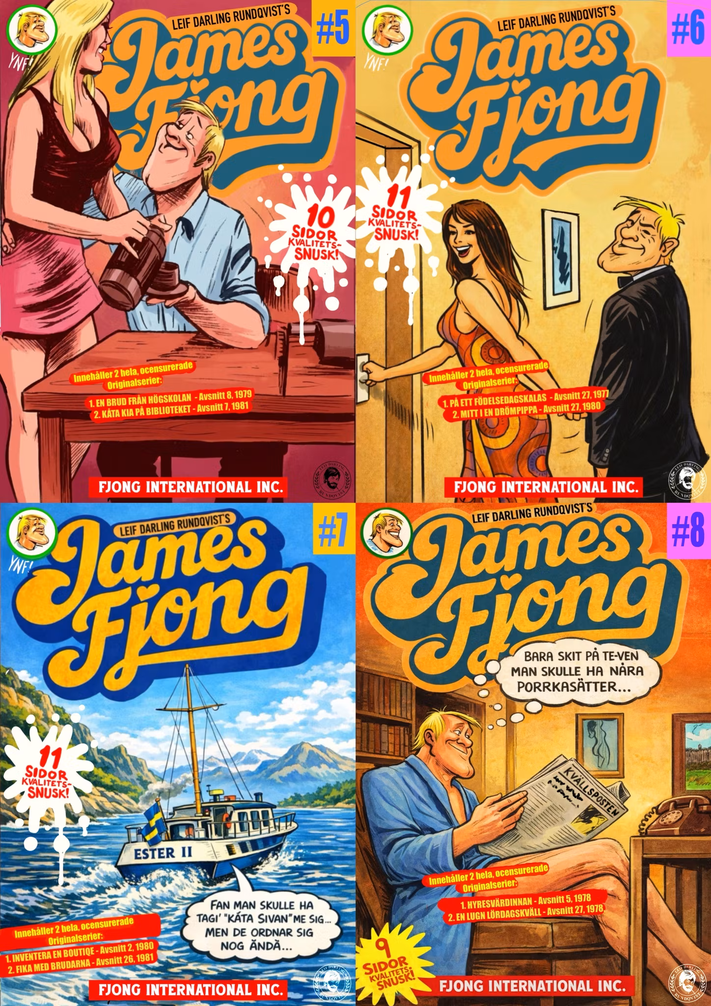 Köp 4 betala för 3! Det här paketet innehåller James Fjong #5 - 8. James Fjong #5EN BRUD FRÅN HÖGSKOLAN - Avsnitt 8, 1979KÅTA KIA PÅ BIBLIOTEKET - Avsnitt